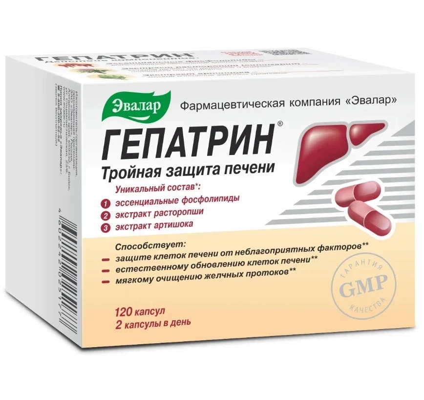 БАД для печени рейтинг открывает Гепатрин от «Эвалар» — мощный трио-продукт, объединяющий эссенциальные фосфолипиды, артишок и силимарин из расторопши. Такая формула обеспечивает сразу три направления действия: восстановление клеток печени, мягкое очищение желчных путей и надежную антиоксидантную защиту. В отличие от препаратов с одним активным компонентом, Гепатрин экономит место в аптечке и деньги — один курс заменяет сразу три. Поддержка печени при токсической нагрузке, сбоях в питании и хронической усталости — в капсулах, проверенных по стандарту GMP.