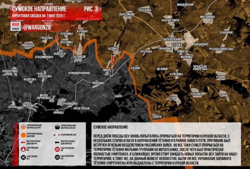 Главные новости » Эксклюзив » В Курской области идут ожесточённые бои в Глушковском районе: карта боевых действий по состоянию на 07.05.2025