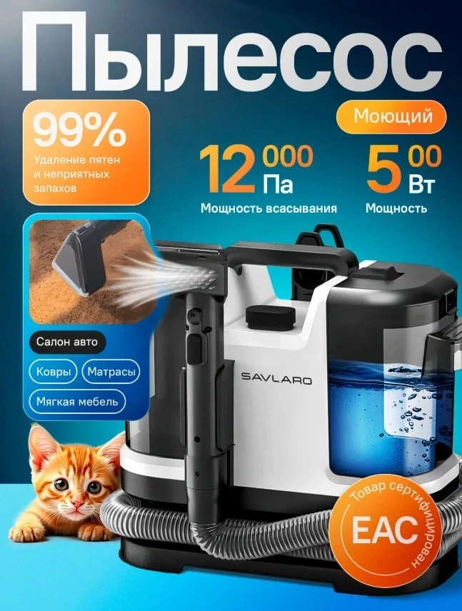 Моющий пылесос Savlaro, для мебели, зеркал, окон, ковров, дивана, мягких игрушек, химчистка автомобиля