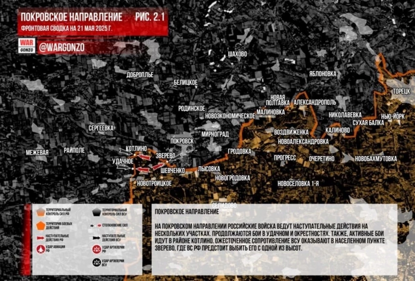 Главные новости » Эксклюзив » ВС РФ ведут ожесточённые бои в районе Удачного и Богдановки на Покровском направлении: свежие данные на 21.05.2025