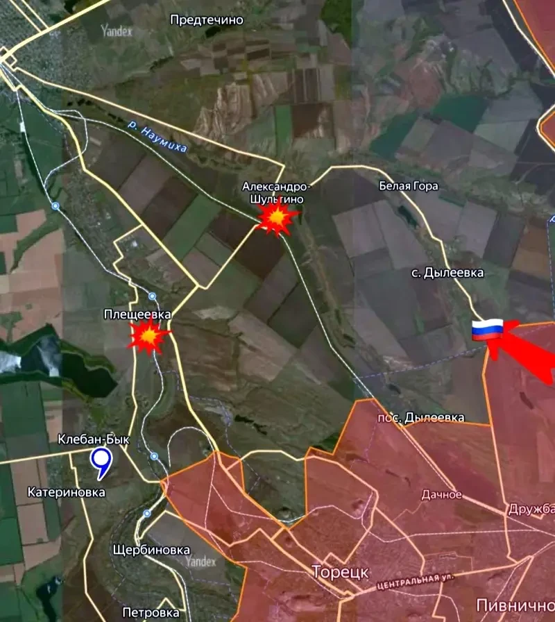 Вражеские мониторинговые каналы сообщают о мощных взрывах в оккупированной Константиновке. Одновременно штурмовики ВС РФ продавили оборону противника от Дружбы севернее Торецка в районе Песчаной балки и продвинулись на три километра к трассе О-05-19, которая выходит на Константиновку. Обе стороны очень активно применяют ударные дроны.
