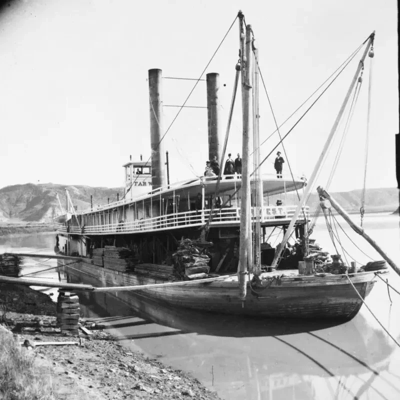 Двухпалубный пароход. Река на территории Монтана, 1870 г.
