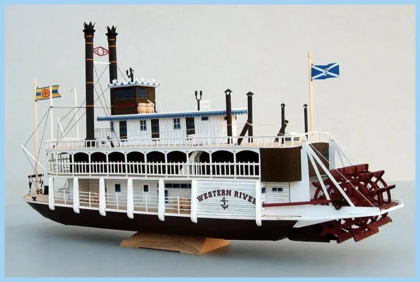 А было так, что еще в 1972 году я купил в журнальном киоске польский журнал «Малый моделяж» с выкройками парохода «Вестерн ривер» из бумаги. Очень мне захотелось сделать эту модель, но, приглядевшись к бумаге и напечатанным на ней деталям, с этой мыслью расстался. Плохая там была бумага, а вырезать из нее требовалось детали толщиной 1 мм.