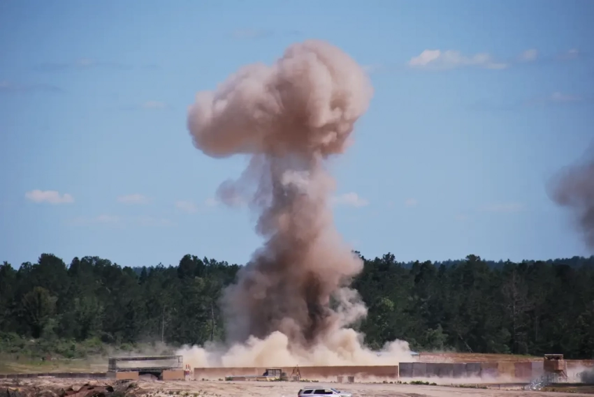Подрыв боеприпаса на крыше укрытия