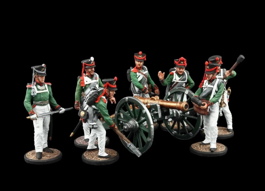 Артиллерийский расчёт (семь фигур и пушка), 1812 г. Производители: «Silver Dream Studio» и «EK Castings»