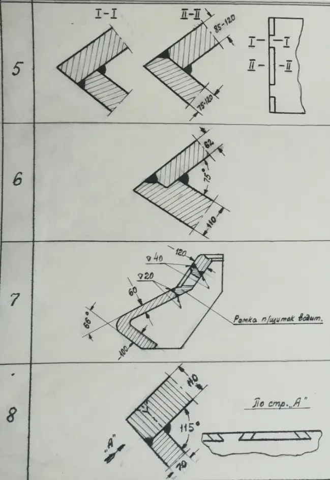 5. Прочное соединение бортов с нижними кормовыми деталями может быть надежно выполнено с применением соединений в четверть и односторонний шип, причем в этом сварка может производиться как аустенитовыми, так и качественными электродами.