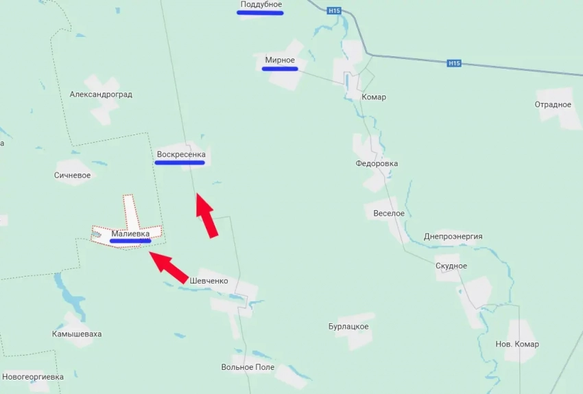 Российские штурмовые группы продвинулись на очередном участке фронта на стыке ДНР с Днепропетровской областью. В результате продвижение к северо-западу от Шевченковского пруда ВС РФ вышли к окраинам села Малиевка. Это восток Днепропетровщины.