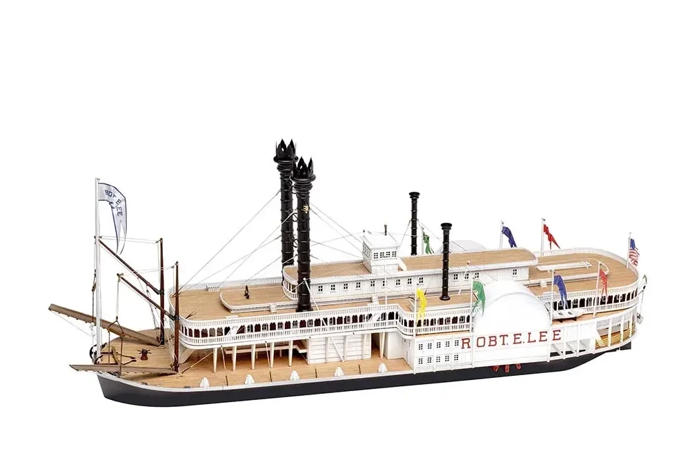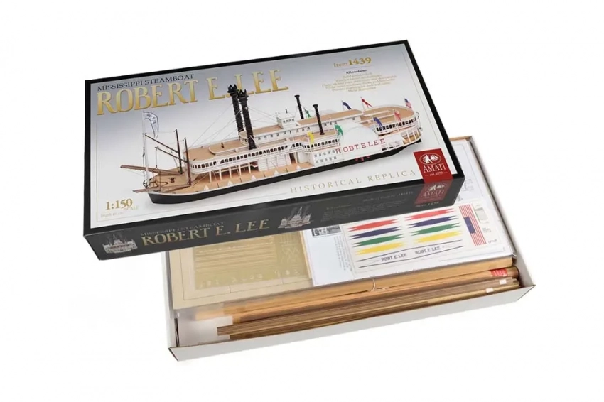 Артефакты истории техники. В прошлый раз мы рассказали о миссисипских пароходах-гигантах. Сегодня наш рассказ будет посвящен их моделям в том числе, причем моделям не из полистирола, а из деревянных полуготовых деталей, над которыми придется потрудиться, но и выглядят они куда более впечатляюще. В предыдущей статье мы уже приводили пример с несколькими полистироловыми моделями парохода «Роберт Е. Ли». Однако его модель итальянская фирма «Амати» выпускает и в виде сборной модели из дерева, причем в масштабе М:150. Цена модели довольно велика и на сегодня составляет около 37 300 рублей – то есть сумму совсем немаленькую.