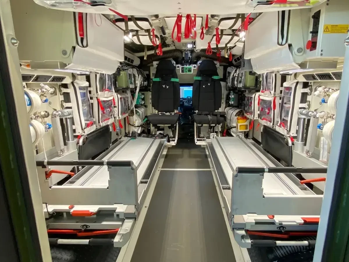 Экипаж техники состоит из 4 чел., при желании в него может входить врач, что позволит соответствовать самым высоким стандартам оказания медицинской помощи. Eagle оснащен удобной системой загрузки носилок и новейшим медицинским оборудованием для квалифицированной транспортировки 1-2 пациентов.