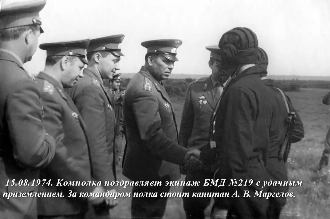 В 1974 году в полку был продолжен эксперимент «Кентавр» — проект командующего ВДВ СССР генерала армии Василия Филипповича Маргелова. Эксперимент заключался в десантировании людей внутри боевых машин. В нём приняли участие солдаты срочной службы А. В. Жагуло и В. Н. Лопухов, которые десантировались 15 августа 1974 года. Инструктировал новых космонавтов ВДВ первый «кентавр» Александр Васильевич Маргелов.