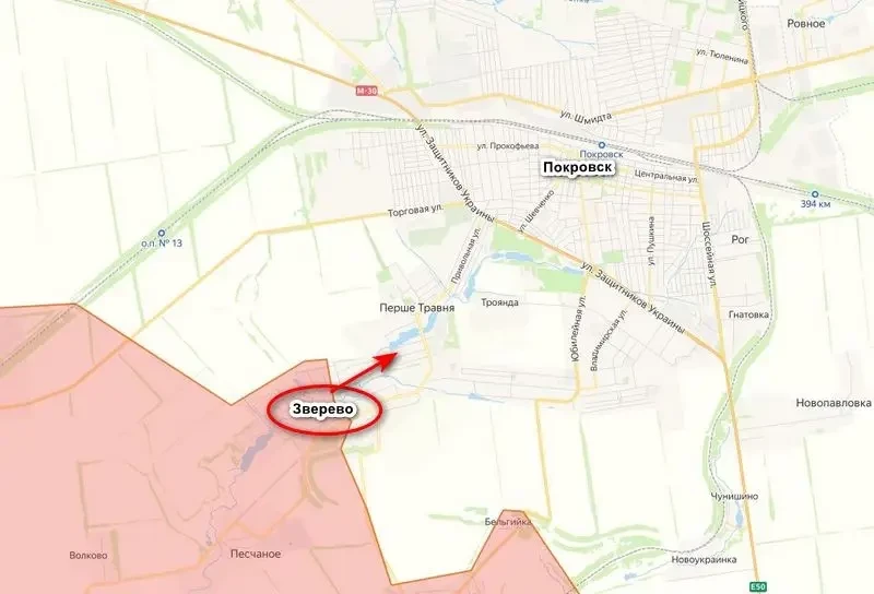 Зверево — это село к югу от Покровска (Красноармейска), фактически его пригород, село переходит в Леонтовичи (Первое Мая), которое напрямую стыкуется с юго-западными кварталами Покровска — улицей Зотова в районе 4-го и 5-го прудов. Зверево наши взяли во второй раз. Первый был в начале года, в январе, когда штурмовые подразделения группировки «Центр» вошли в село и закрепились там, выбив противника. Однако позднее украинские войска под командованием генерала Драпатого, подтянув резервы, нанесли контрудар, вытеснив наших из Зверева и еще ряда населенных пунктов.