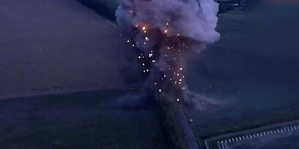 После этого раздается мощный взрыв и поднимается облако из искр и дыма.