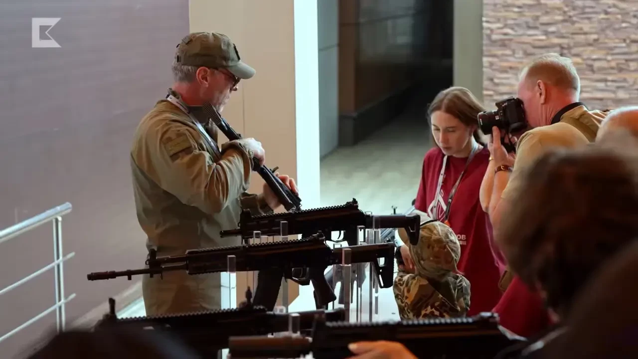 Выставка оружия на «Кубке военкоров». На заднем плане — укороченный АК-15СК
