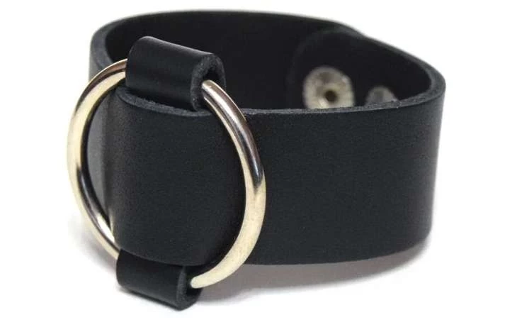 Женский кожаный браслет на узкое запястье 15-16,5 см. Браслет выполнен вручную из натуральной кожи классического черного цвета с матовым блеском. Роль декора отдали металлическому кольцу цвета металлик, красиво смотрится на контрасте с черным. Кожаный браслет регулируется и фиксируется на руку стальными кнопками серебристого цвета. Кожаный браслет для женщин хорошо держит форму и комфортно сидит на запястье.