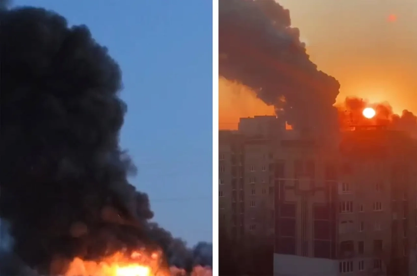 Мощный пожар во Львове. Столб дыма можно видеть из разных частей города.