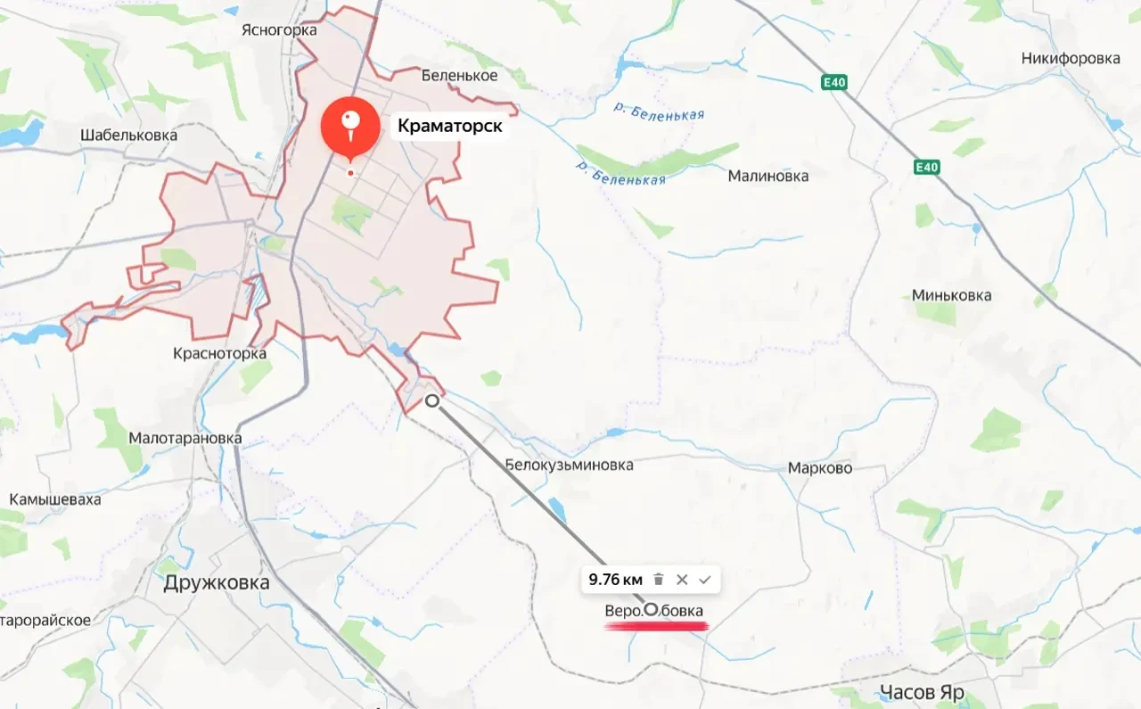 С освобождением центра Веролюбовки российские войска сократили расстояние до Краматорска с юго-восточного направления. На данный момент от передовых позиций ВС РФ до южной окраины этого города дистанция составляет менее 10 км.