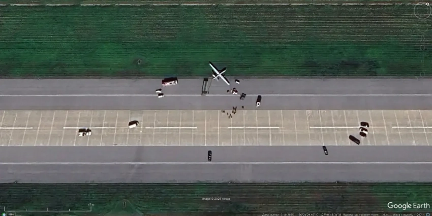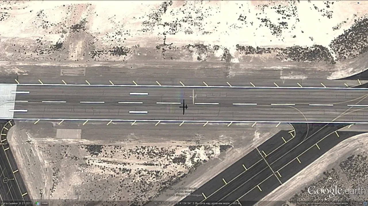 Спутниковый снимок Google Earth: БПЛА над взлётно-посадочной полосой авиабазы Крич