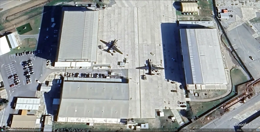 Спутниковый снимок Google Earth: самолёты Pilatus U-28A Draco на авиабазе Херлберт Филд. Снимок сделан в феврале 2023 года