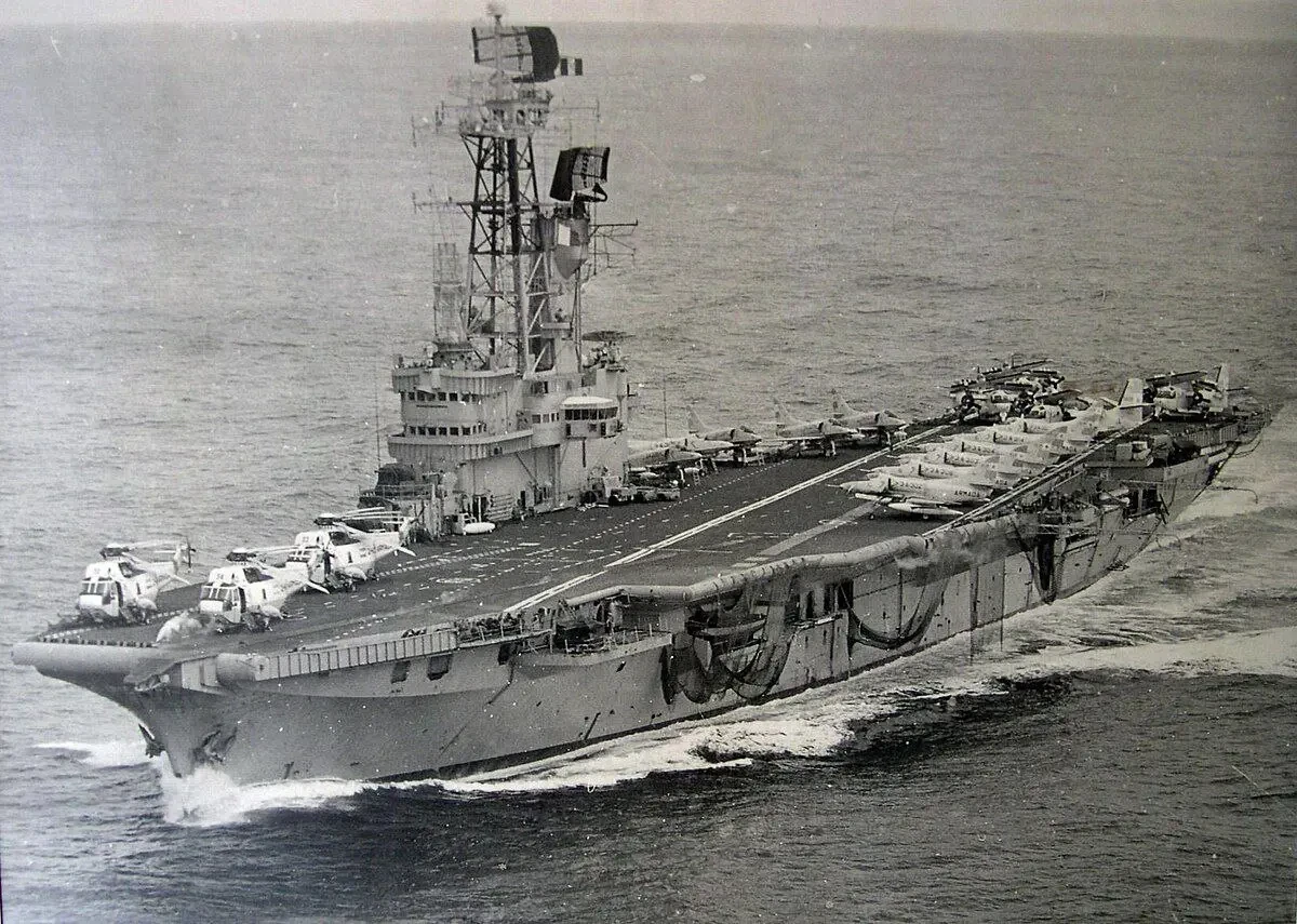 Если ВВС Аргентины были значительно сильнее того, что могла выставить Великобритания на Фолклендах, то аргентинский флот... Тут всё было несколько печальнее. Командовал ВМФ адмирал Хорхе Исаак Анажа. Авианосец у Аргентины имелся ровно один — «25 мая», бывший британский «Венерабль» (тип «Колоссус», военной постройки). В Королевских ВМС корабль прослужил только 3 года, после чего его продали Нидерландам, там на нём случился пожар в котельном отделении, после которого корабль перестроили и продали Аргентине в 1968 году. Корабль мог нести до 24 самолётов, основной ударной силой были «Скайхок» А-4Q, помимо которых на корабле базировались противолодочные самолёты S-2 «Трэкер» и вертолёты «Си Кинг». Интересно, что в 1969 году британцы предложили Аргентине купить для авианосца свои самолёты вертикального взлёта и посадки «Харриер», но аргентинцев они не впечатлили. Корабль модернизировали в 1981 году, поставили новую РЛС, паровую катапульту и аэрофинишёр, передний край скошенной палубы снабдили увеличенным спонсоном. Всё это, теоретически, позволяло использовать на авианосце «Супер Этандеры», но сделать это не успели.
