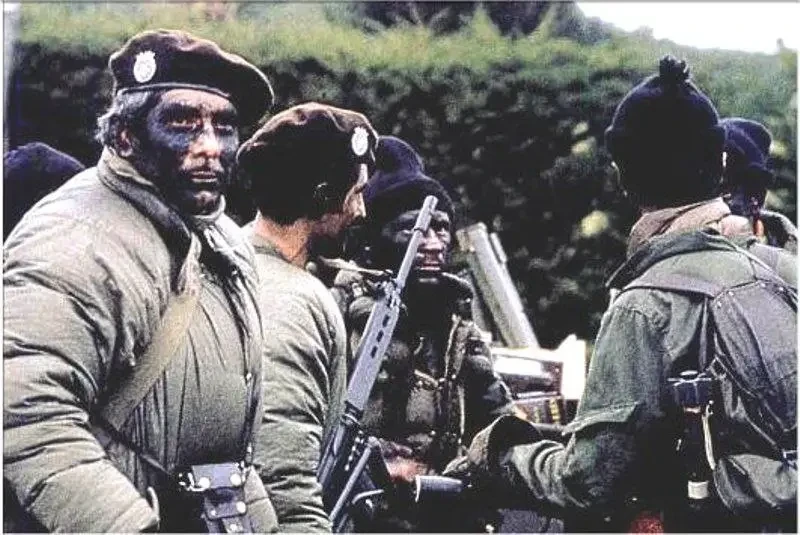 Спецподразделения? Они были, но давайте не будем о грустном? Флот пытался воссоздавать итальянскую 10-ю флотилию MAS (получилось совсем плохо!), ВВС — британскую SAS (вышло не лучше), жандармерия — эскадрон специального назначения «Аларкан» («Скорпион» по-русски) (название оказалось сильно страшнее действительности). Наиболее подготовленными были роты горных егерей, сформированные из андских индейцев, но их на Фолклендах не задействовали. Все остальные «коммандос» были теми же срочниками, прошедшими дополнительную подготовку в месяц или чуть больше.