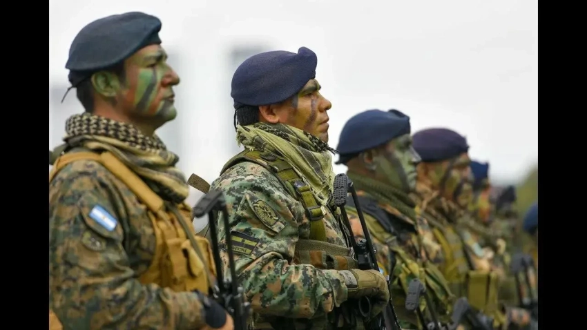 Аргентинские срочники, чувствуется, что парней учили бегать, чистить и мести...