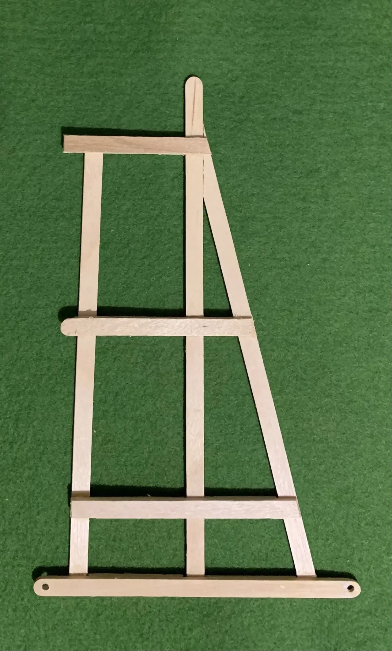 Сделайте две такие рамы в зеркальном отображении, после чего их нужно будет зашить изнутри «досками», то есть более тонкими и узкими палочками-мешалочками. Наклеивать их можно как угодно – и вертикально, и горизонтально. А вот в тех местах, где на боковых сторонах видны усиливающую конструкцию балки, их нужно вырезать из более толстых палочек, либо тонких, но склеенных по две, и наклеить уже на поверхность, обшитую «досками».