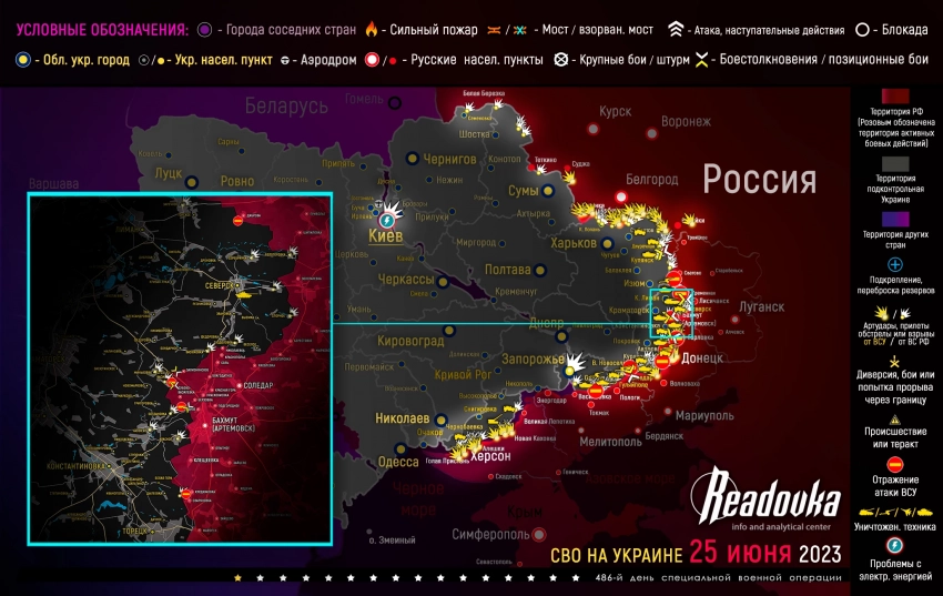 Карта военных действий и ситуация на фронтах вечером 25 июня от Телеграм-канала «Readovka»