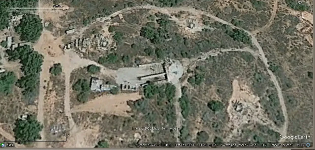 Спутниковый снимок Googlе Eаrth: эта же позиция ЗРК С-125М1 в восточной части Триполи. Снимок сделан в сентябре 2012 года