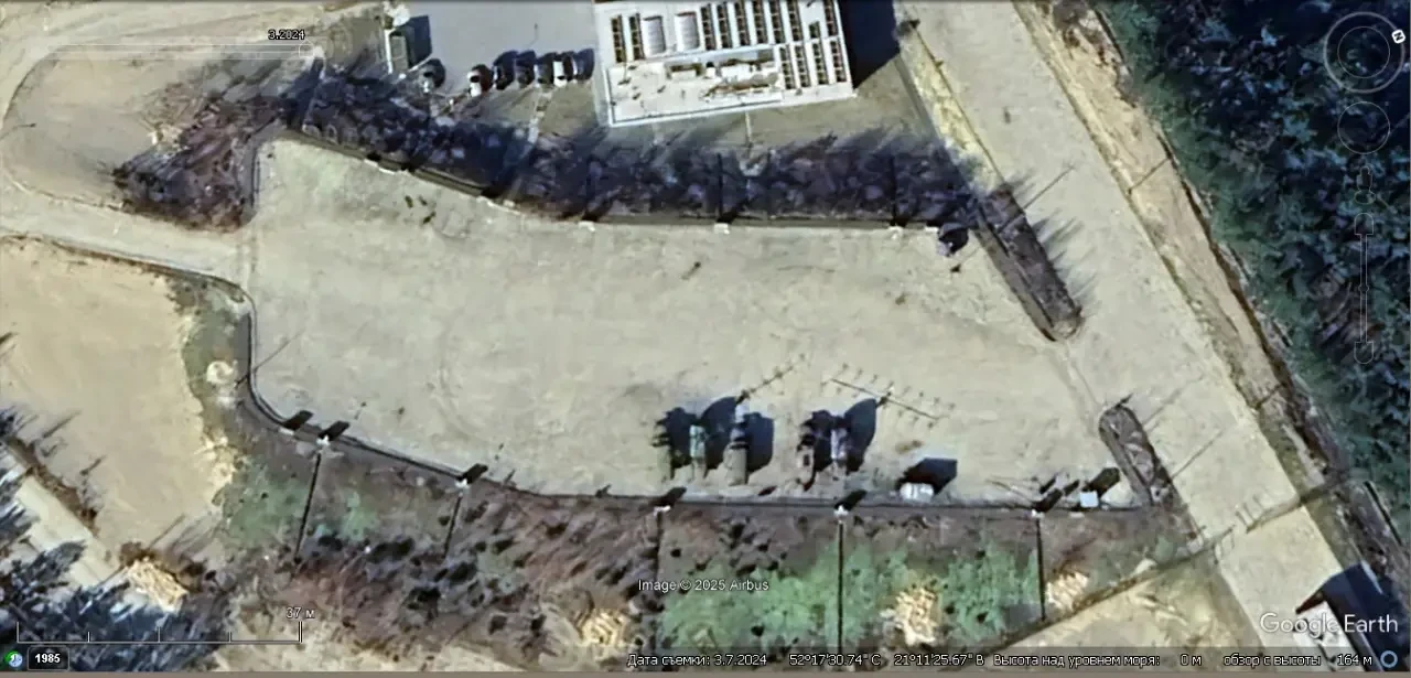 Спутниковый снимок Googlе Eаrth: РЛС П-18 развёрнутая в 10 км восточней Варшавы. Снимок сделан в марте 2024 года