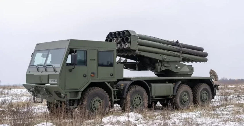 Реактивная система залпового огня «Буран» калибра 220 мм была разработана на предприятии «Шепетовский ремонтный завод». Планировалось, что в ВСУ «Буран» заменит советскую РСЗО БМ-27 «Ураган». Огневые испытания система прошла ещё в 2020 году, отмечает "Военное обозрение".