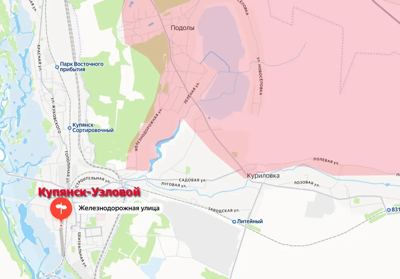 Тем временем появляются сообщения о развитии успеха Вооружёнными силами России на упомянутом левобережье Оскола. Речь идёт о переходе под контроль ВС РФ улицы Железнодорожная в пригороде Купянска – населённом пункте Купянск-Узловой.