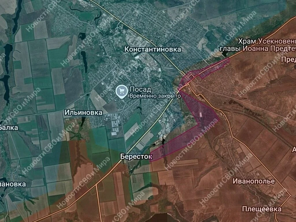 На южном фланге Константиновского направления ситуация без существенных изменений, идут бои в районе Берестка и Степановки, а также в самой Константиновке. Севернее сложной остаётся ситуация в районе Веролюбовки: ВСУ интенсивно контратакуют и часть позиций в селе переходит из рук в руки, а Клиновое и Попасное - в серой зоне. Продолжается сражение за Майское и Марково, где враг удерживает ключевые позиции на высотах севернее.