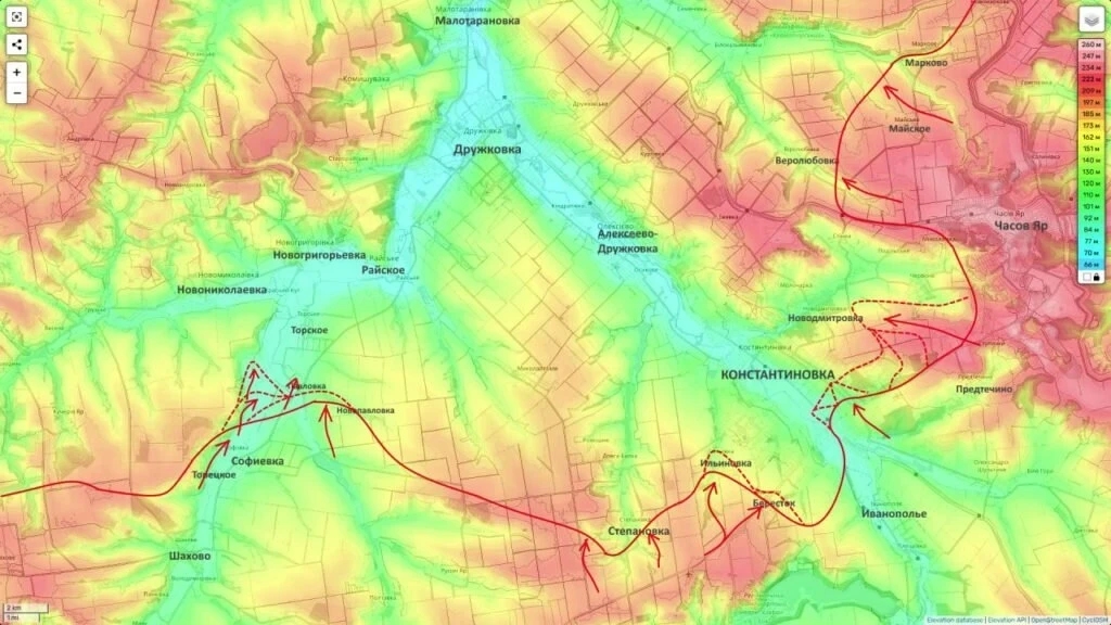 Этот участок местности имеет тактическое значение, поскольку позволяет воздействовать на тылы украинской группировки. Одновременно продолжаются бои в самой Константиновке. По имеющейся информации, российские подразделения закрепились в южной части города, а столкновения постепенно смещаются в центральные кварталы. На восточных окраинах ведётся зачистка пригородов, что рассматривается как этап постепенной блокады гарнизона.