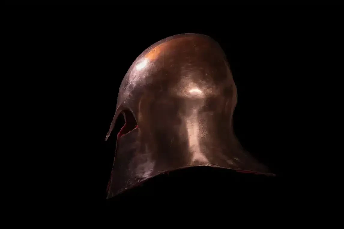 Цельный архаический коринфский шлем Димитриоса Кацикиса, изготовленный из медного листа методом горячей чеканки из частной коллекции. Фото: Димитриос Карвунцис