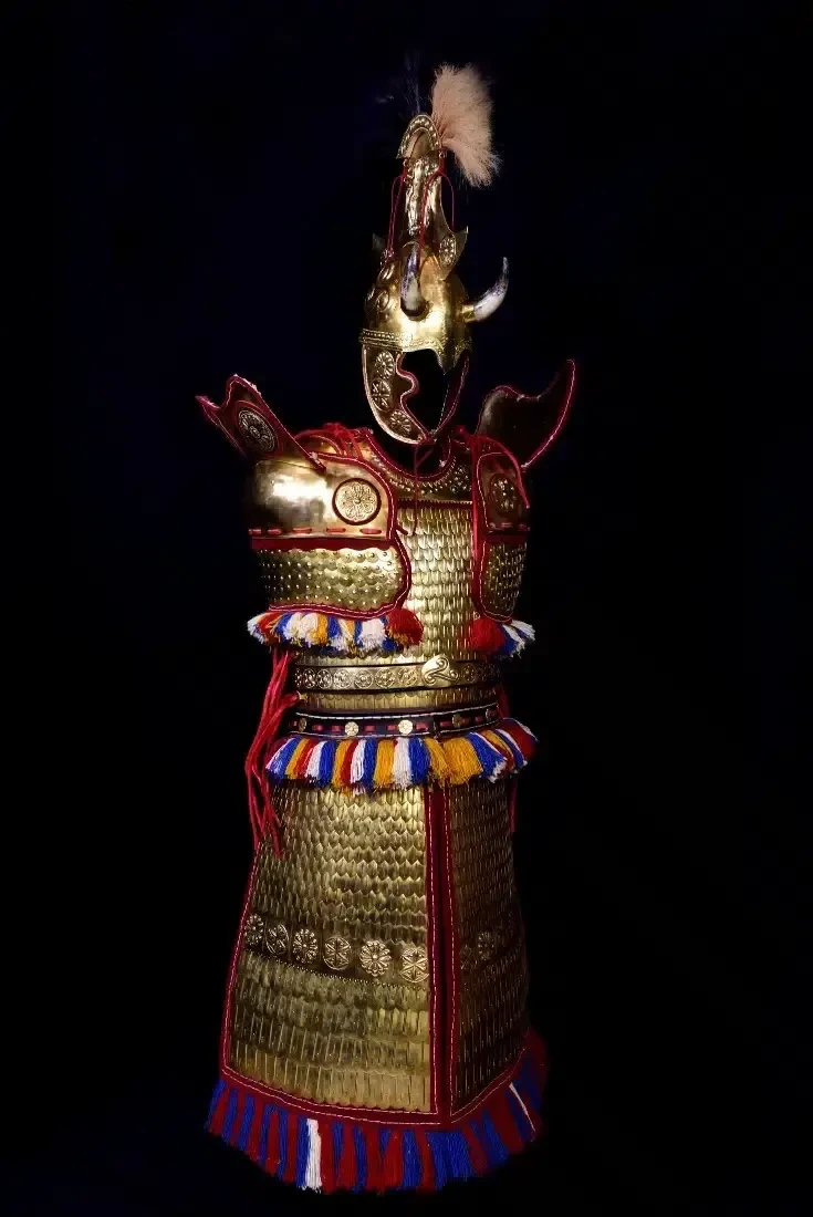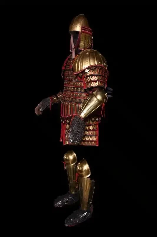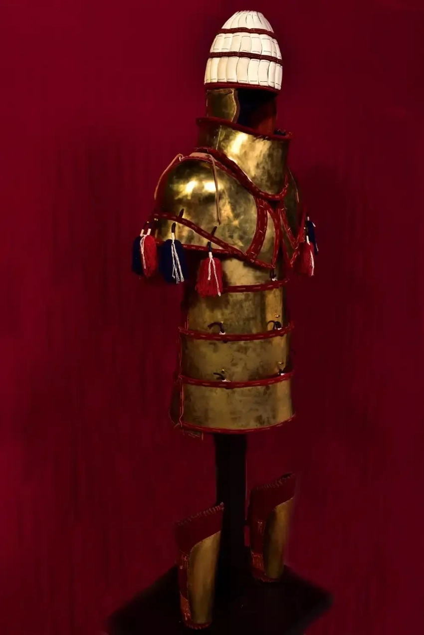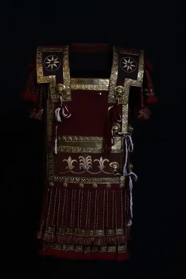 • шесть бронзовых пластин, прикреплённых к нижней кромке панциря — три спереди и три сзади, образующих подобие фартука.