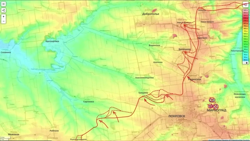 Однако это привело к ослаблению позиций ВСУ под Покровском, чем и воспользовались российские войска, продвинувшись в Гришино. По имеющимся данным, штурмовики ВС РФ заняли центр города и удерживают его, несмотря на контратаки врага. Также бои идут на северо-западной окраине города. Кроме того, заняты часть опорников ВСУ к северу от дороги Покровск - Родинское, нашим удалось продвинуться на 1,5 км.