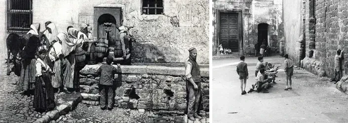 На фото слева: город Пьяна-деи-Гречи (ныне - Пьяна-дельи-Альбанези). На фото справа: сицилийский дворик. Первая половин XX века