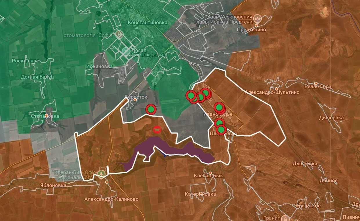 На Константиновском направлении ВС РФ заняли новые позиции в районе Берестка и продвигаются в мкр. Берестовой на южных окраинах Константиновки.