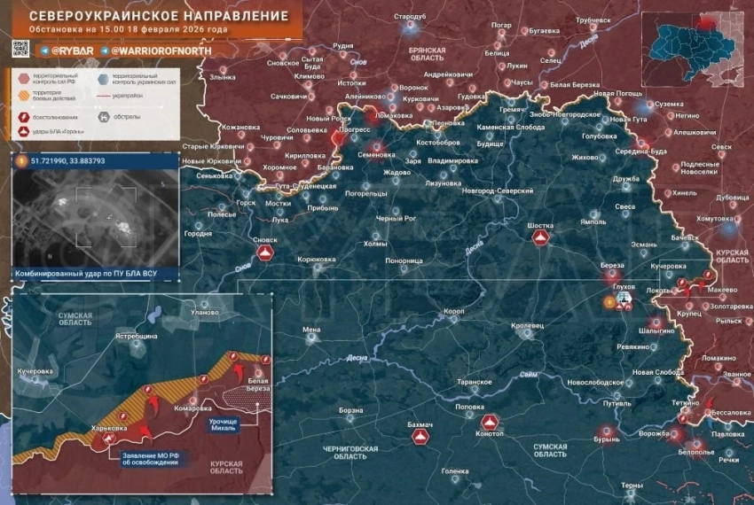 Наступление ВС РФ в зоне СВО усиливается на нескольких направлениях: свежие карты боевых действий на 19.02.2026