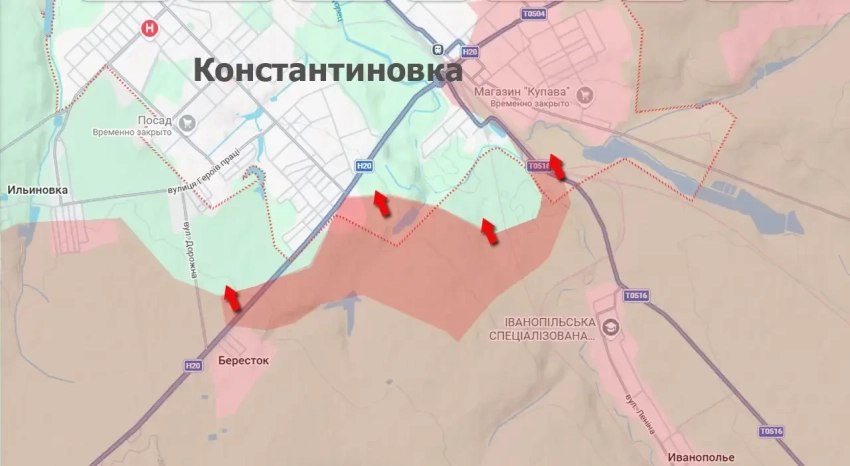 В самой Константиновке так же продолжаются бои. Юго-восточные, восточные и частично северо-восточные кварталы города находятся под контролем армии России.