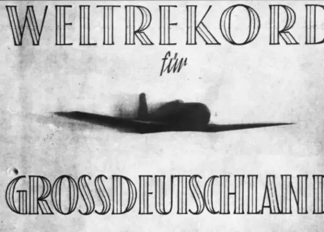 Ганс Дитерле (Hans Dieterle) вылезает из кабины после рекордного полёта. Его встречает ответственный за спецполёты, ассистент Хейнкеля Лупп Кёлер (Lupp Köhler)