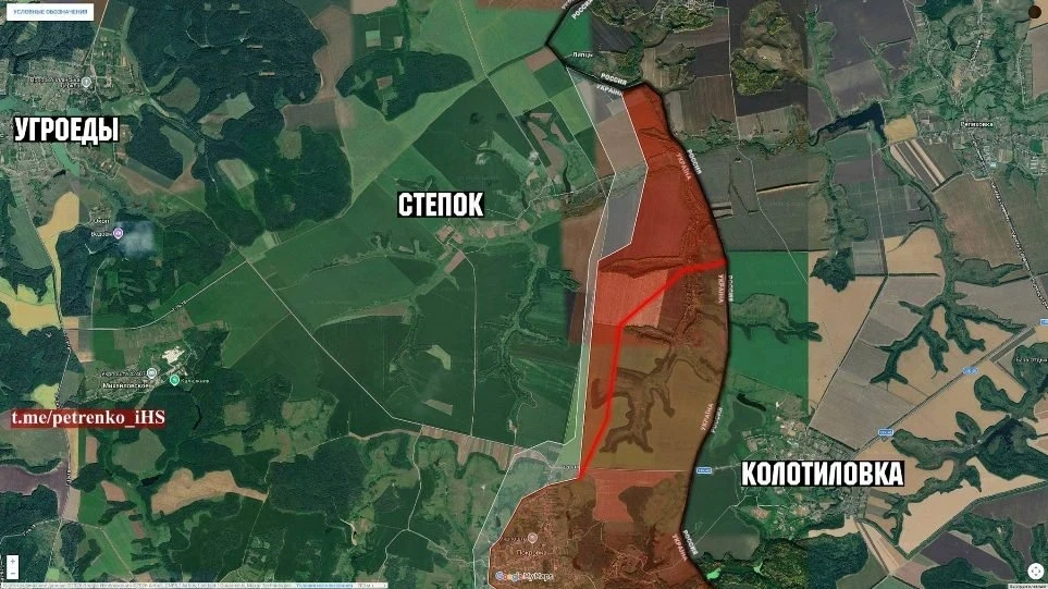 Южнее Степка штурмовые группы ВС РФ успешно используют рельеф местности, продвигаясь вдоль балок в направлении лесных массивов. Противник пытается удерживать рубежи малыми группами, но инициатива полностью на стороне наших войск.