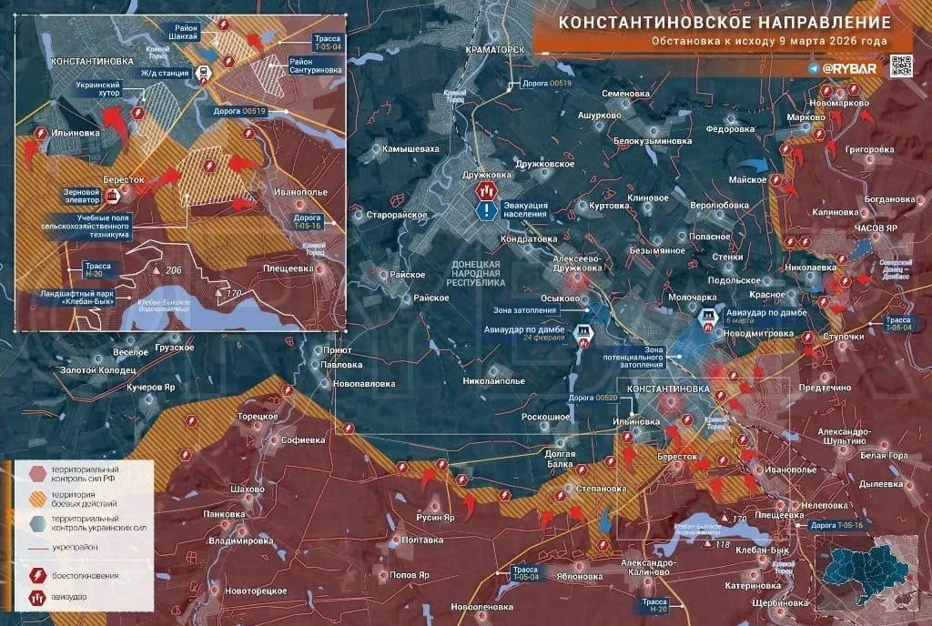 На начало марта 2026 года район Красного Лимана остается одним из самых тяжелых участков фронта на севере ДНР. Российские войска ведут атаки с нескольких направлений - северо-запад, север и восток, постепенно пытаясь приблизиться к линии Славянск - Краматорск.