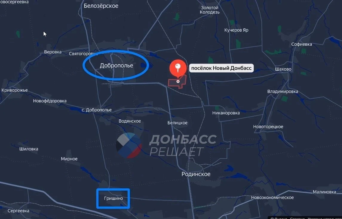 В Гришино российские силы уверенно теснят врага на западные окраины. Также зафиксировано продвижение к Шевченко через балку Водяной Яр и бои в районе карьеров на подступах к Кучеров Яру.