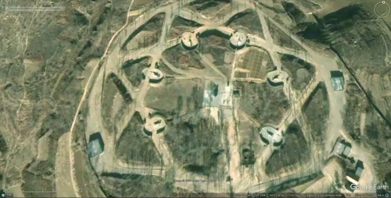 Спутниковый снимок Google Earth: позиция ЗРК НQ-2 северо-восточней Пекина. Снимок сделан в ноябре 2008 года