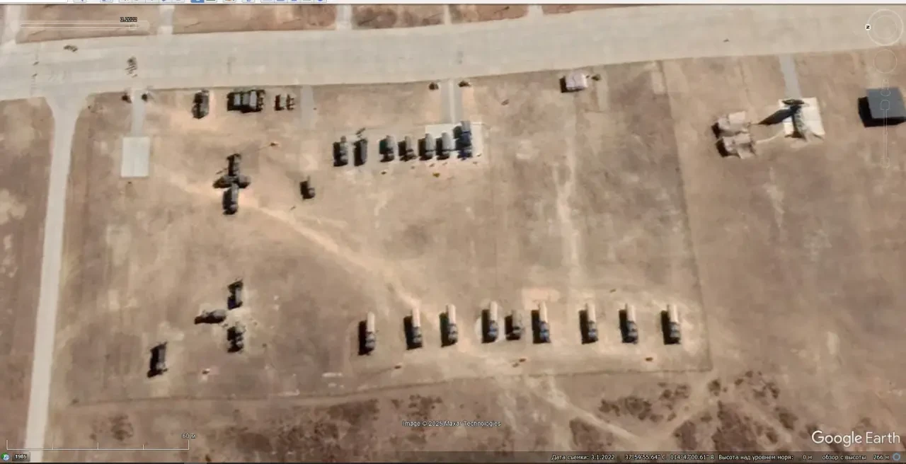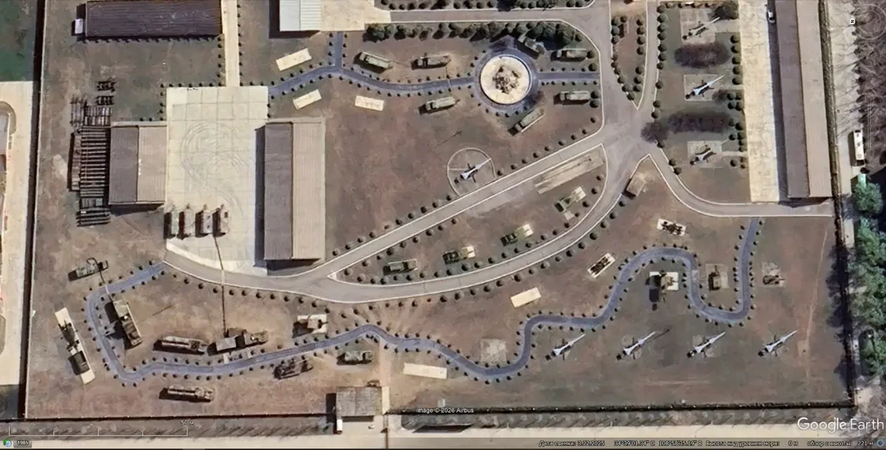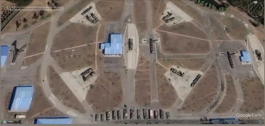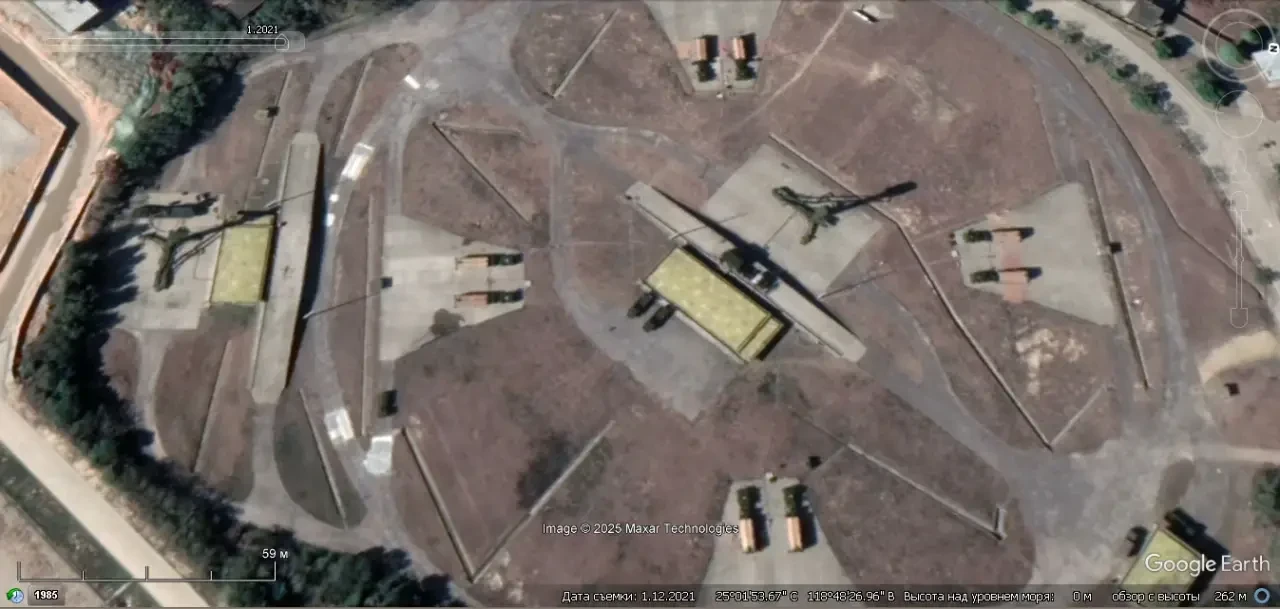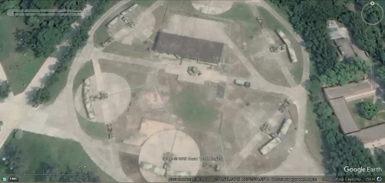 Спутниковый снимок Google Earth: элементы ЗРС С-300ПМУ и HQ-2 на территории Учебного центра ПВО НОАК в окрестностях города Сиань. Снимок сделан в марте 2025 года