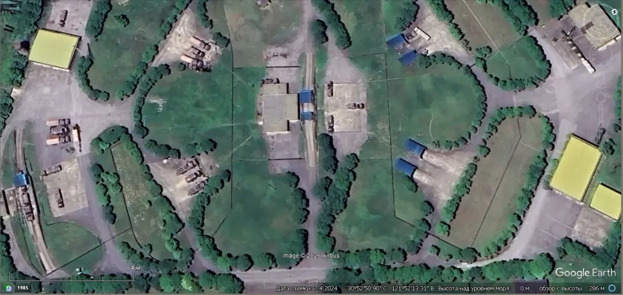 Спутниковый снимок Google Earth: позиция ЗРС С-300ПМУ-1 недалеко от побережья на востоке Шанхая. Снимок сделан в июле 2024 года