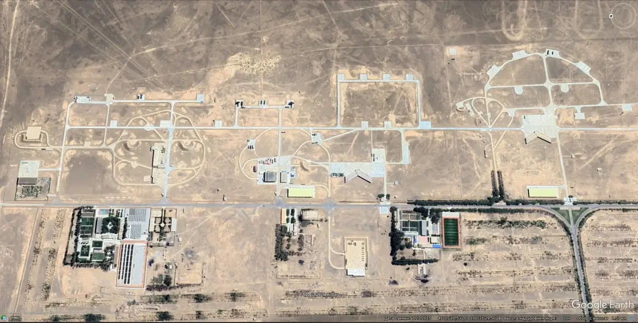 Спутниковый снимок Google Earth: стартовые площадки полигона ПВО в провинции Ганьсу. Снимок сделан в июле 2025 года