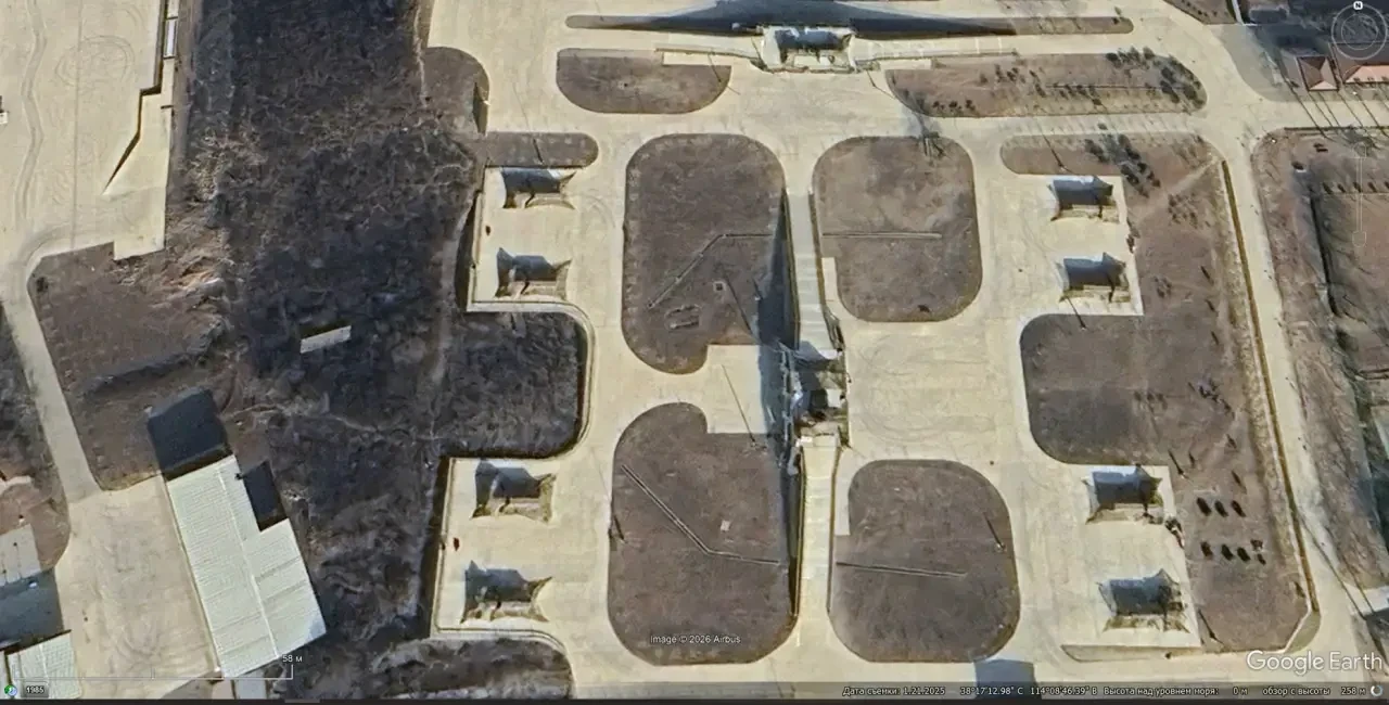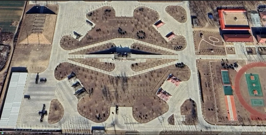 Спутниковый снимок Google Earth: позиция ЗРК HQ-9 северо-западней городa Шицзячжуан в провинции Хэбэй. Снимок сделан в январе 2025 года