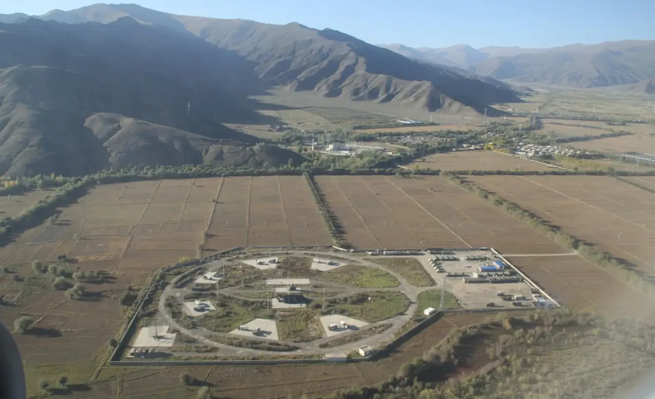 Спутниковый снимок Google Earth: позиция ЗРК НQ-2 в окрестностях авиабазы Лхаса Гонггар в Тибетском автономном районе. Снимок сделан в сентябре 2010 года